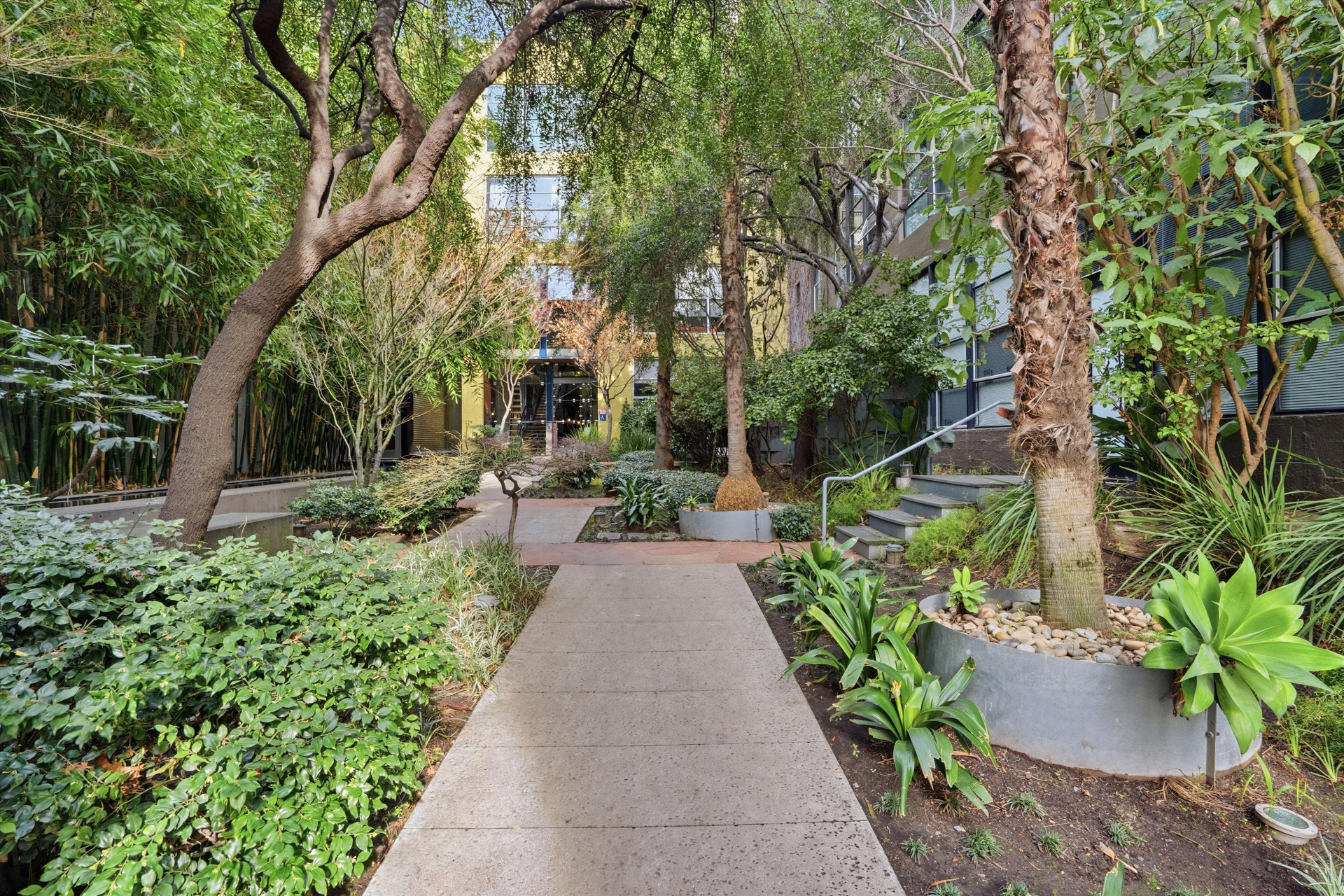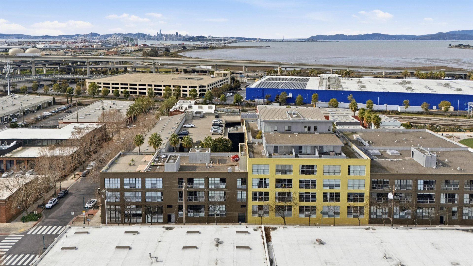 Residents enjoy a serene landscaped courtyard with Zen garden & 5-story water feature, secure entry, dedicated parking with interior access, and a shared rooftop deck w/ sweeping city & Bay views. Close to shopping, dining, the free Emery Go-Round to BART, & easy commuter access to Oakland, San Francisco, & beyond.