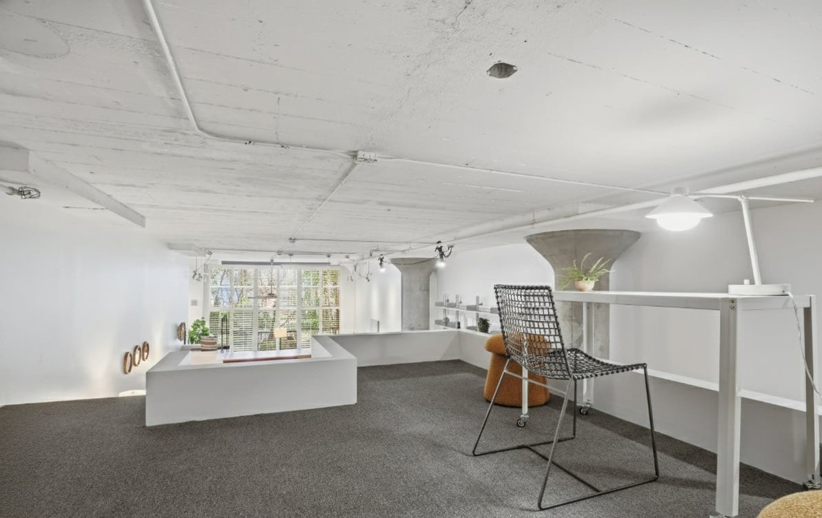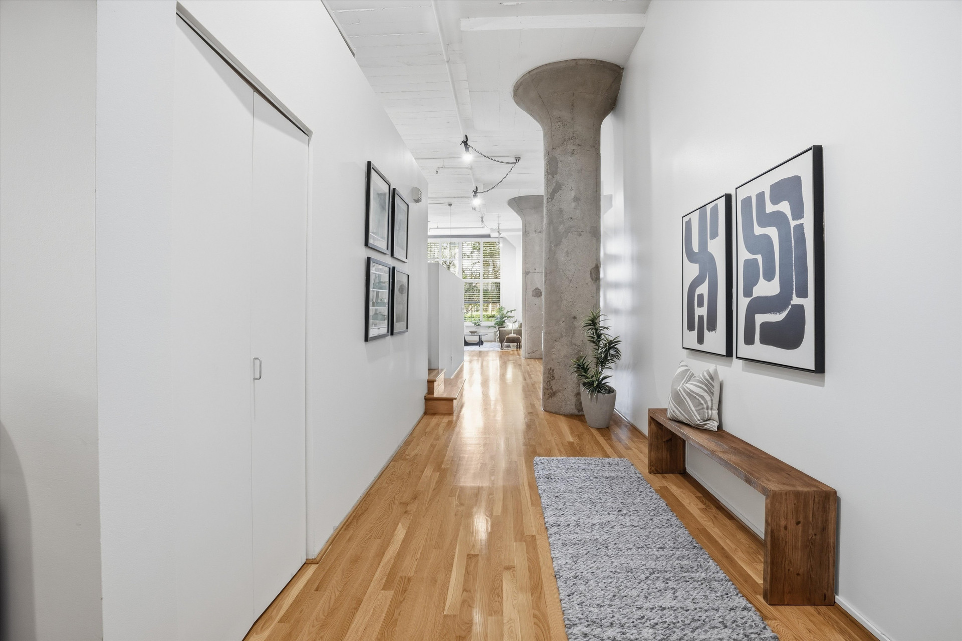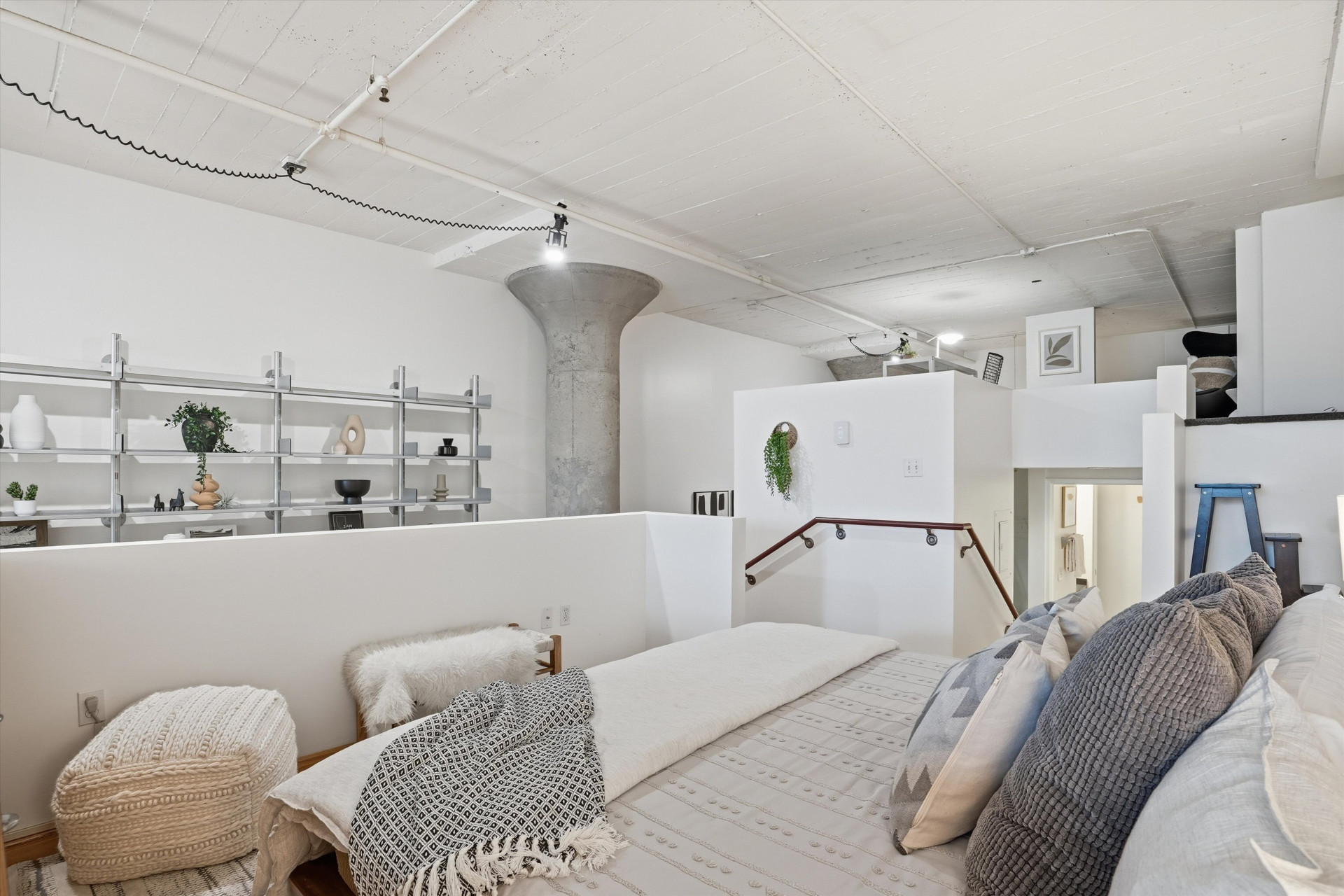 The flexible floor plan includes a lofted area perfect for an office, guest space, or creative use, plus in-unit laundry, a walk-in closet, and Wi-Fi controlled thermostats. Ground-floor access offers convenience while maintaining privacy and the scale of a true warehouse loft.